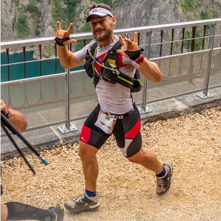 Je viens du cyclotourisme avec un goût certain pour la longue distance. En 2014, après quelques années sans sport pour cause d'entrepreneuriat, 3 potes m'offre une inscription à un half ironman. Ca fait plus de 5 ans que je n'ai pas couru, je nage comme une enclume, mon vélo commence à reprendre l'air mais souffre des kg accumulés au cours des dernières années et j'ai 9 mois pour me préparer pour mon premier triathlon. Le virus fait son chemin si bien que je m'inscris pour l'ironman de Vichy l'année suivante. Finisher dans la douleurs, mais finisher... Le triathlon longue distance fait désormais parti de ma vie (j'ai bouclé depuis 4 ironman et une 12 aine de half). Mais une petite voix dans ma tête me ramène réguliérement sur des défis sportifs personnels sans dossard (traversée du lac du Bourget dans la longueur, 6 ascensions du grand Colombier soit un peu plus de 7000m de d+ dans la journée etc). Et je crois bien que cette petite voix m'a parlé du Nature man var explorer... 😉